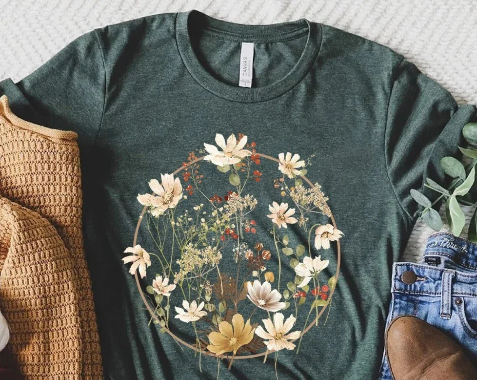 Floral Shirt Aesthetics Gift for Her Round Neck Comfortable T-Shirt